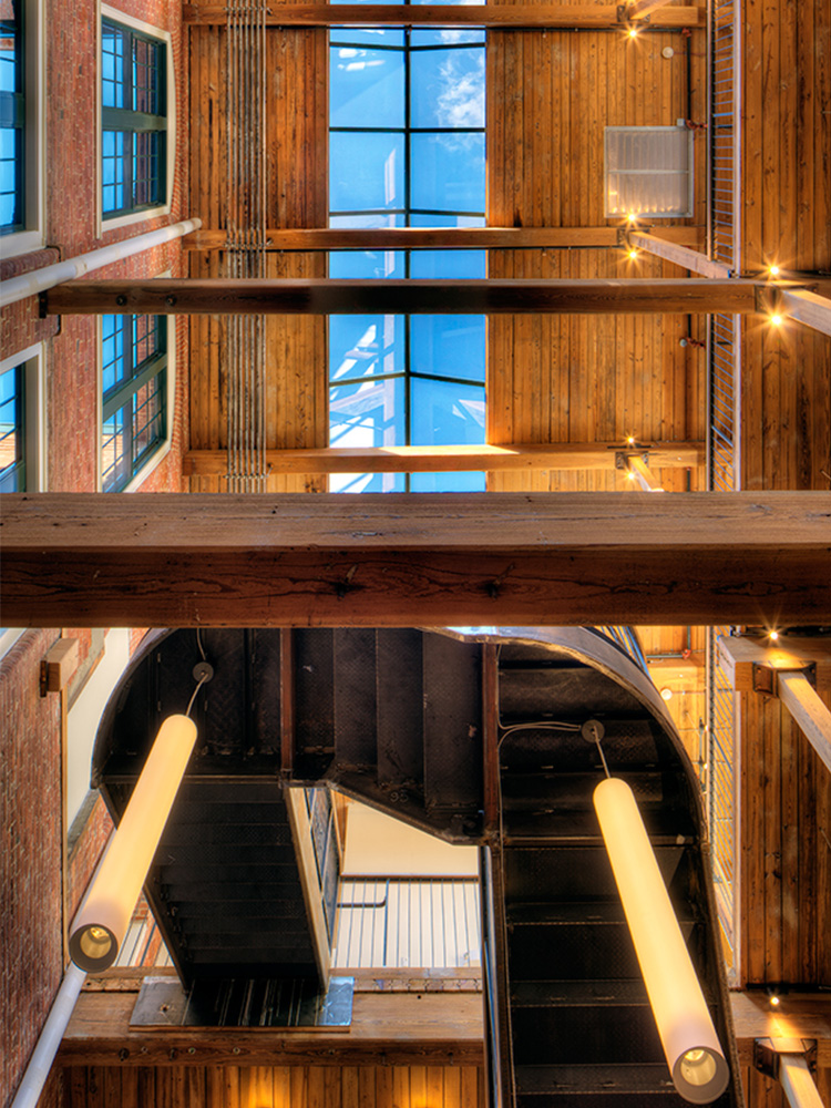A painstaking restoration with exquisite attention to detail has transformed this historic “mill village” into unique loft-style residences, respecting the past while catering to the lifestyles of today. The 239,000 sf project includes 131 residential units. One sustainability feature is 20,000 sf of solar panels on the roof.