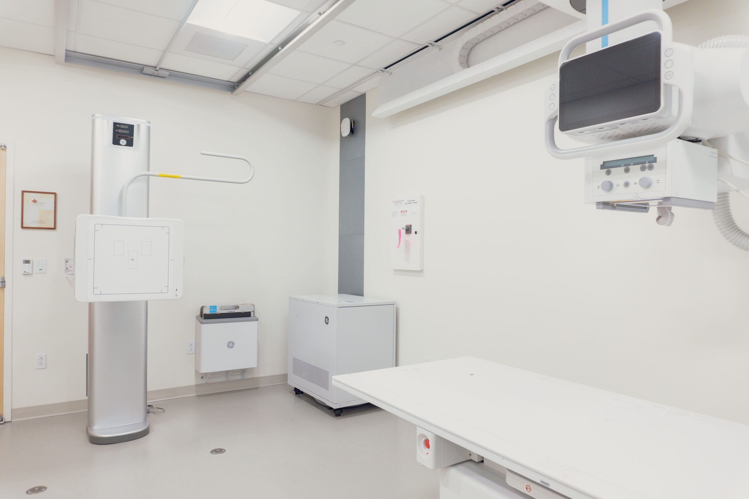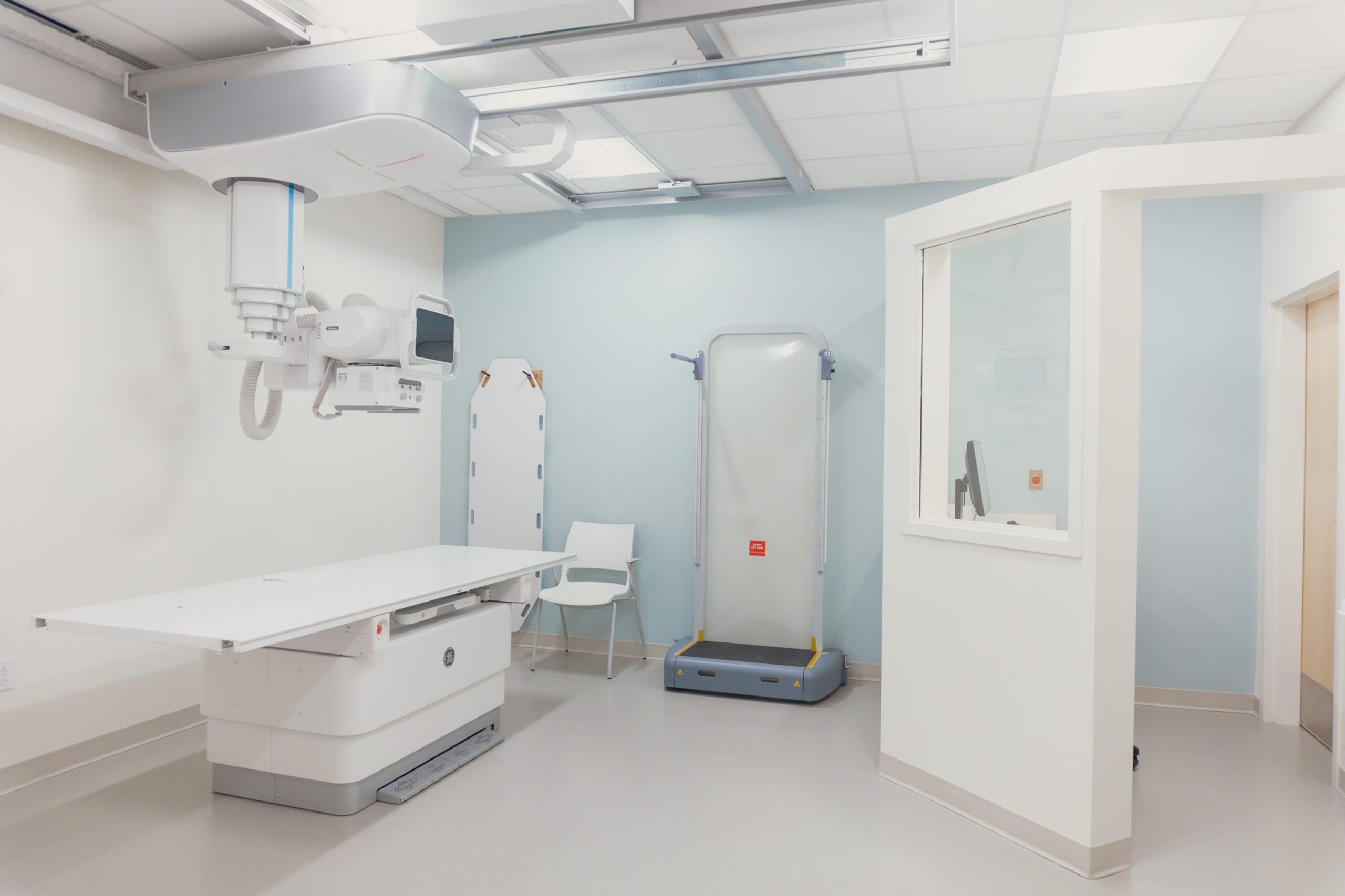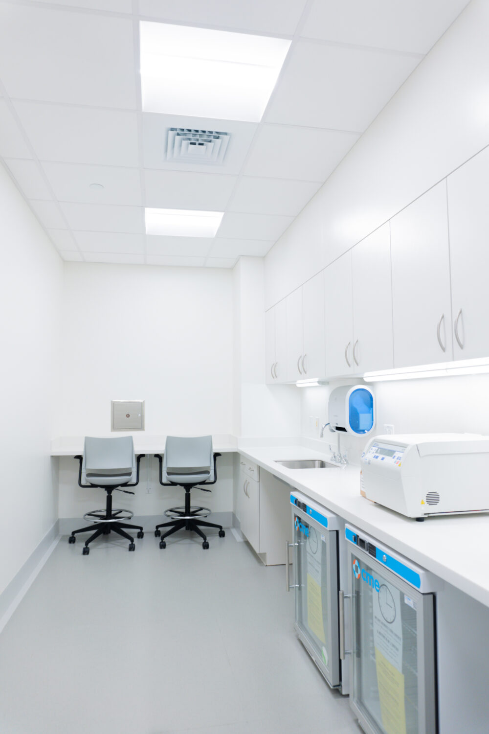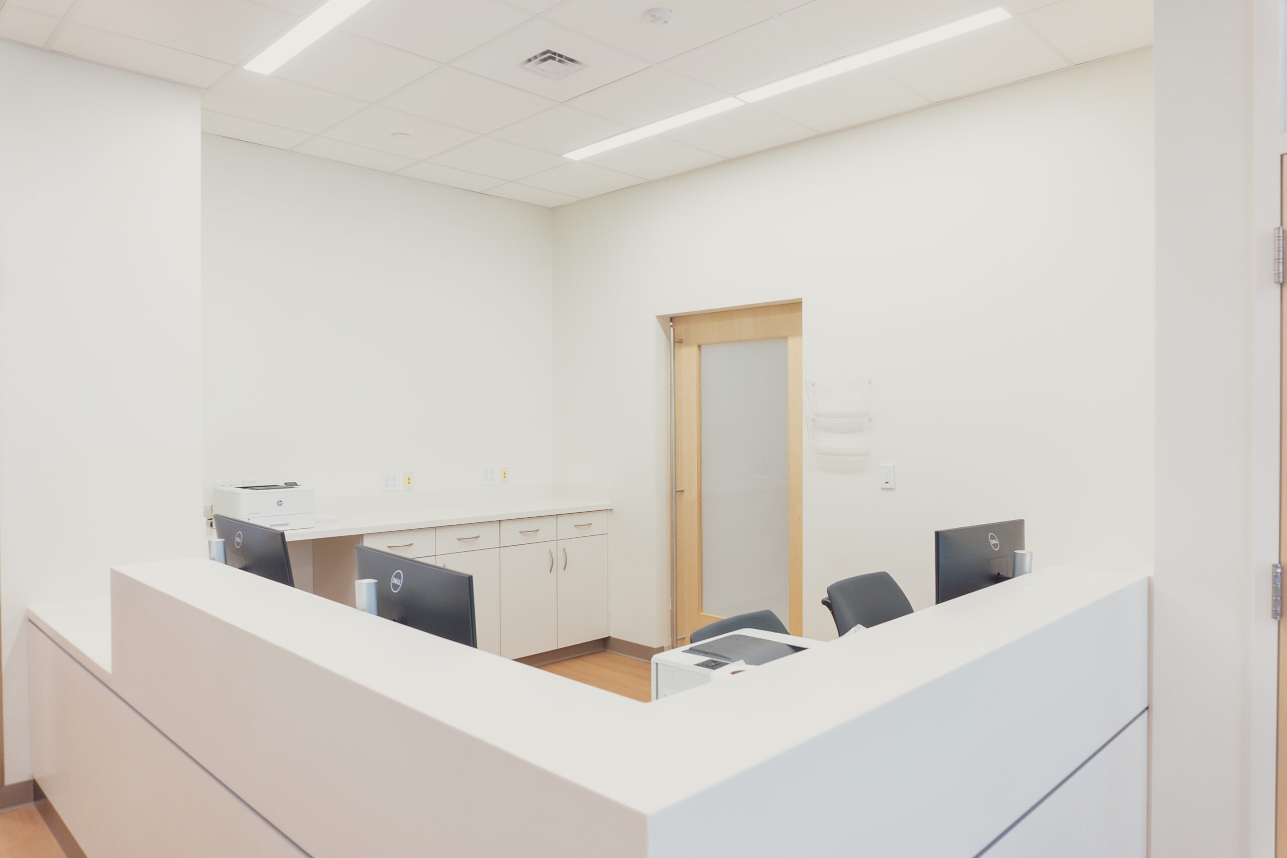 The spaces were previously occupied by retail, office, and food-service tenants with complex infrastructures to house commercial mechanical and refrigeration equipment. TOCCI completed extensive under-slab scans to locate existing drain lines for subsequent underground trenching and plumbing. The team cut an 11-inch structural indoor slab to connect plumbing lines. KI modular walls were installed throughout – partitions made from materials fitting infectious control and sterile surfaces requirements in healthcare facilities.
